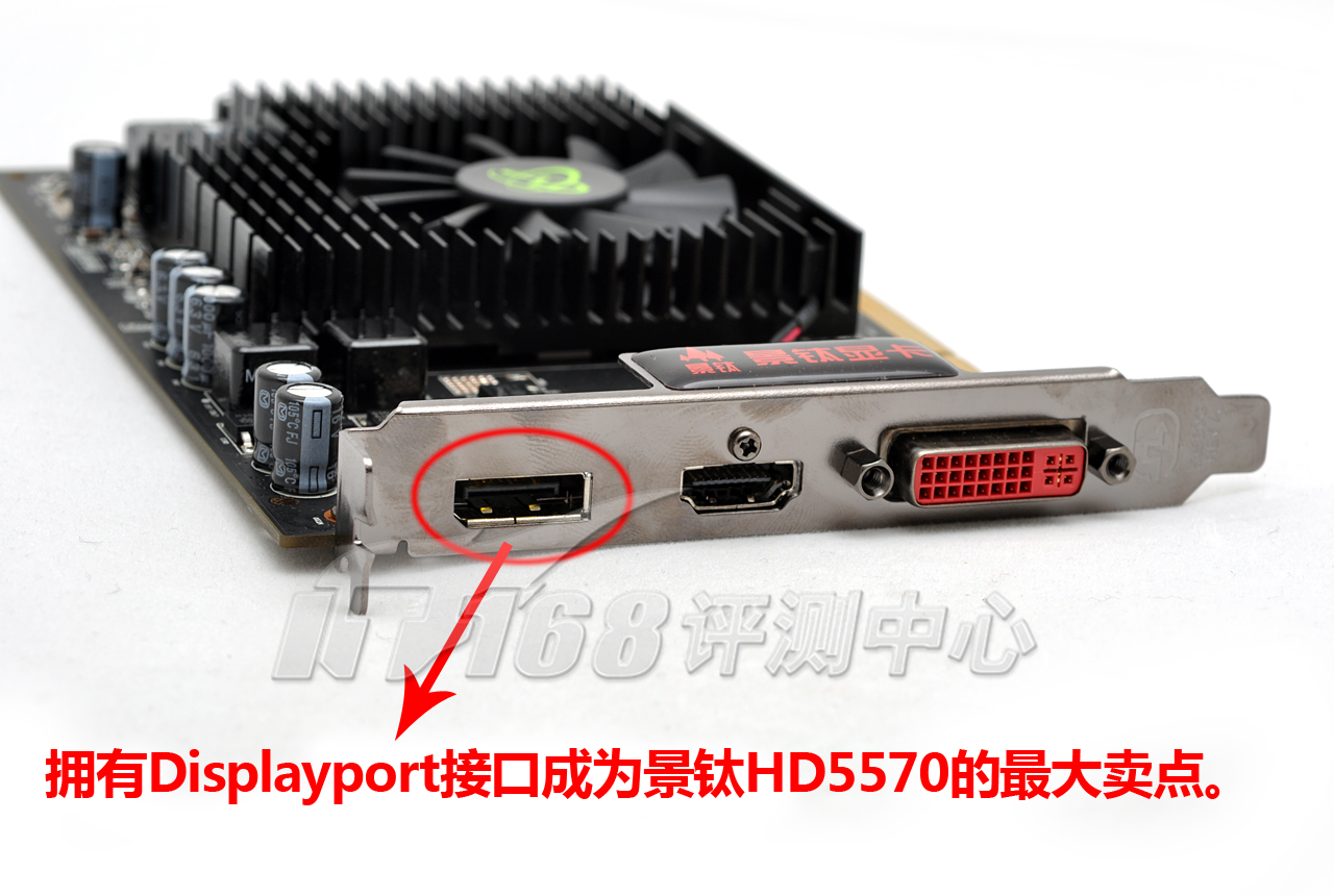 景钛HD5570显卡,是目前显卡市场上最为便宜、拥有Displayport输出接口的,能够组建三屏Eyefinity平台的显卡。