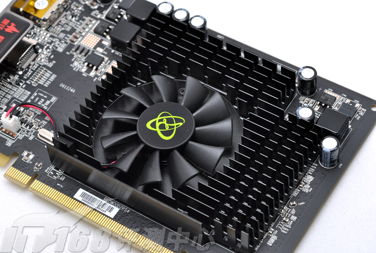 散热器方面,由于GPU核心功耗比较低,所以一体式的铝片散热器+静音的风扇已经完全足够。