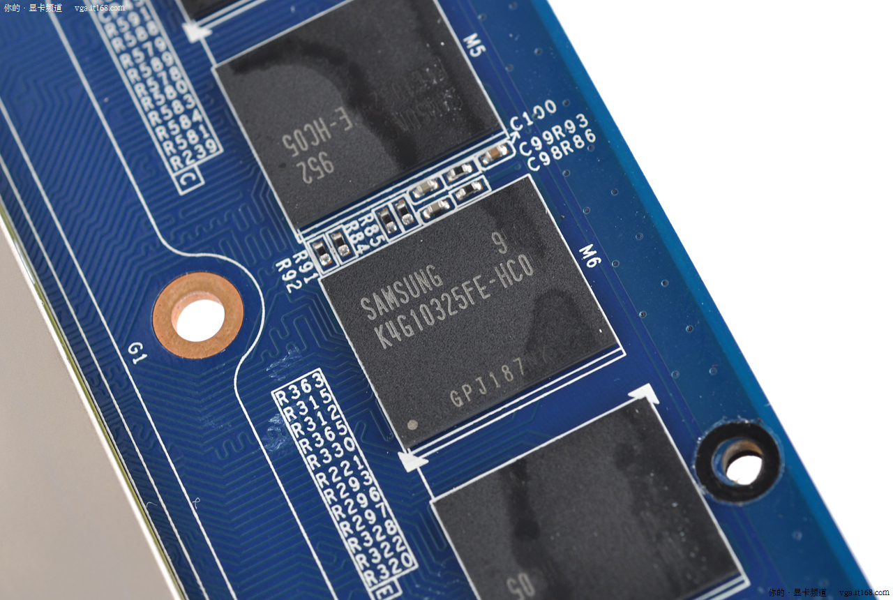 显存方面,影驰GTX470黑将版显卡与公版GTX470同样都是采用了三星HC05高速GDDR5显存颗粒,正面10颗组成了1280MB/320bit的强大显存规格,核心/Shader/显存默认频率为607/1215/3348MHz,与公版GTX470相持平。