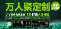 【IT168 河北行情】为迎接2013年NGF大赛来临,七彩虹携手宁美国度装机旗舰店将在5月17日,即GeForce e-sports大赛前夕,举行“万人聚定制-DIY游戏电脑主机”团购活动。具体配置包括了i5-3470核心、七彩虹网驰 650Ti-GD5 1024M等英伟达官方指定的游戏配置。原3888元的价格,在5月17日线上团购当天仅需2999元,前100名付定金的顾客还可赠送英伟达游戏群英会门票,一起来下面了解下吧。