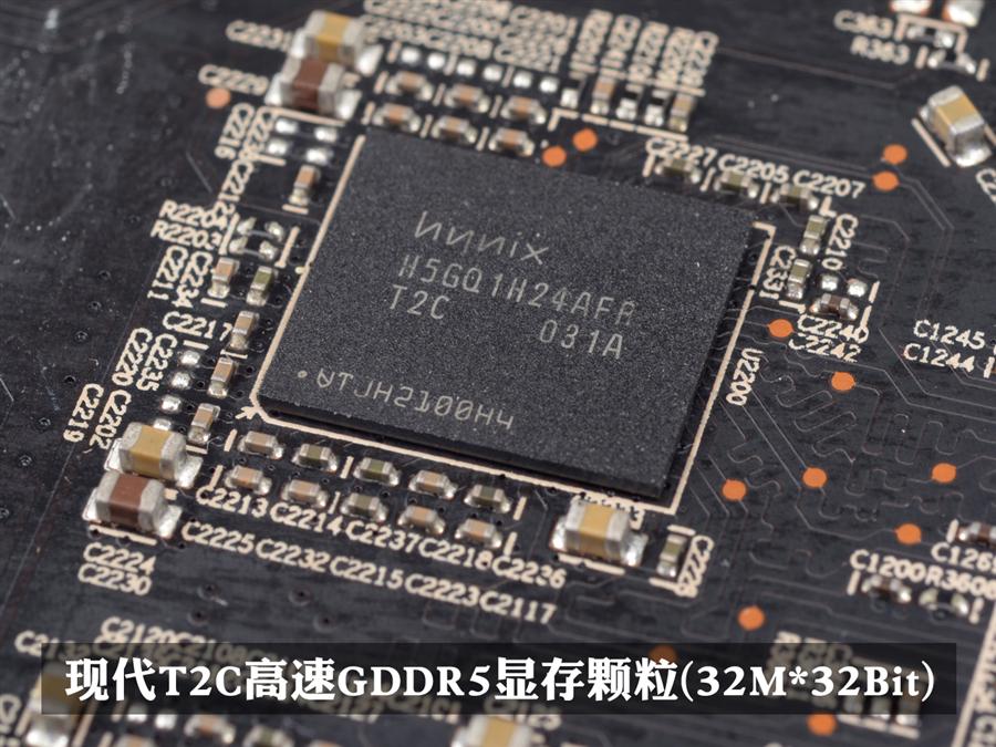 显存方面,XFX(讯景)HD6770 5屏版显卡(HD-677X-Z5)采用现代T2C高速GDDR5显存颗粒,正反两面各四颗共8颗32M*32Bit组成了1GB/128bit的显存规格,默认频率为850/4800Mhz。虽然显存位宽只有128bit,但仍然能提供了76.8GB/s带宽,浮点性能更高达1.36TFlops。再通过ATI独有的HyperMemory,实现动态内存调用,从而实现2G海量显存。