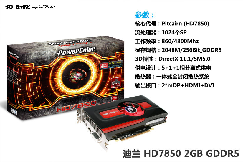 迪兰 HD7850 2GB GDDR5