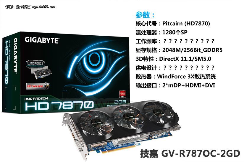 AMD Radeon HD7870显卡同样采用了28nm工艺的GCN架构,流处理器数量为1280个,频率为1000/4800MHz,是第二款拥有1GHz高频发布的显卡产品。显存规格为2048MB/256Bit,而TDP最高功耗设计将仅在175W之下。